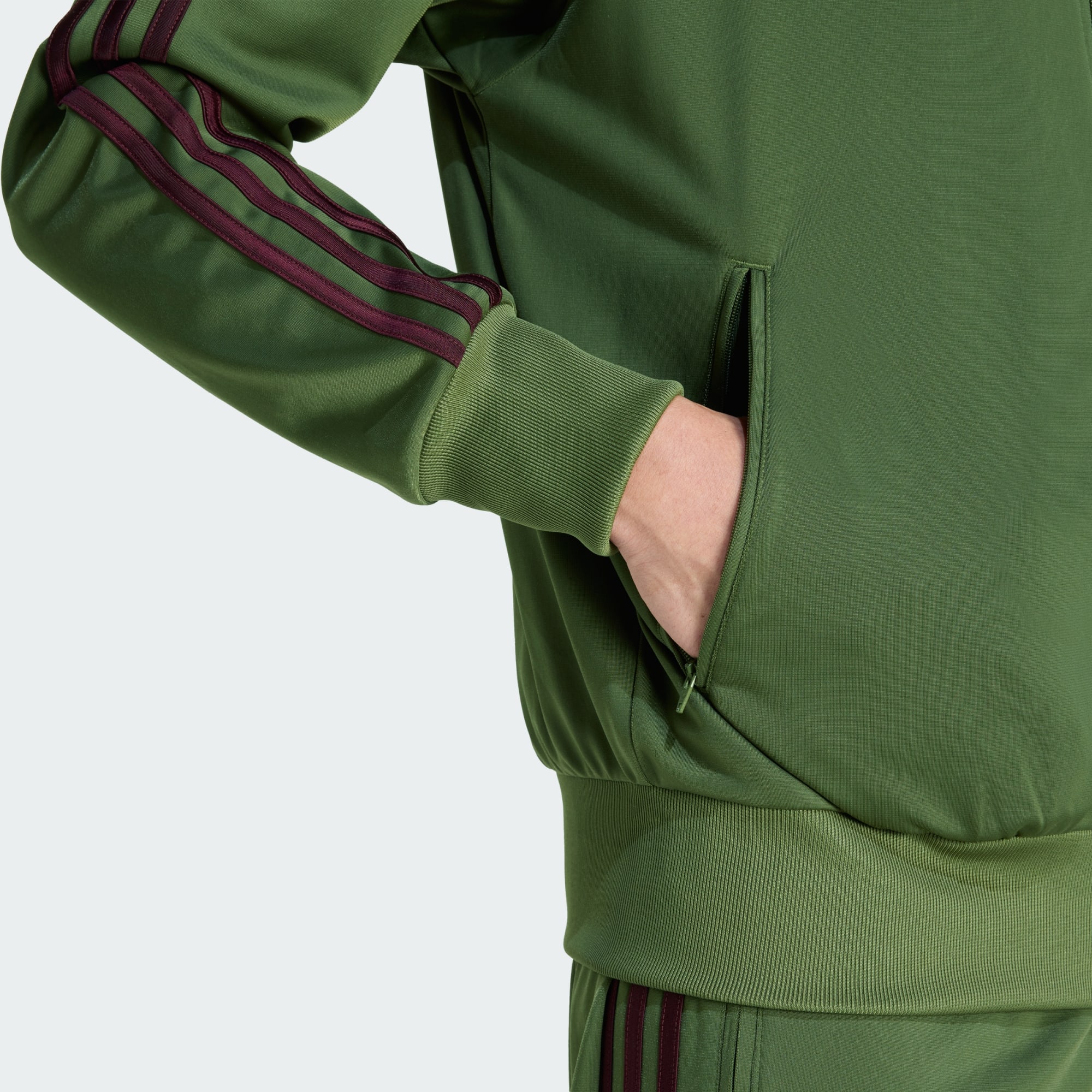 Enfile cette veste de survêtement ample pour afficher le style classique à 3 bandes.