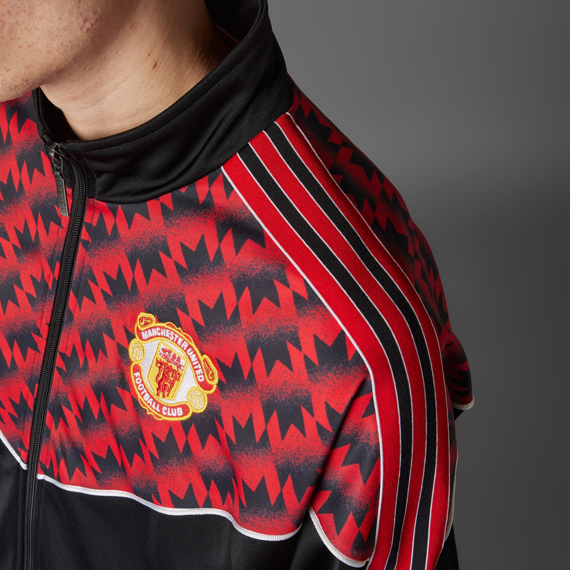 Manchester United a remporté la Coupe d'Europe en 1991 et cette veste de survêtement de football est issue d'une collection célébrant cette victoire spéciale. Réplique à l'identique de celle portée pendant cette quête, elle présente une coupe ample. Un logo Trèfle adidas et un motif flocon de neige iconique sur la poitrine complètent le look intemporel.