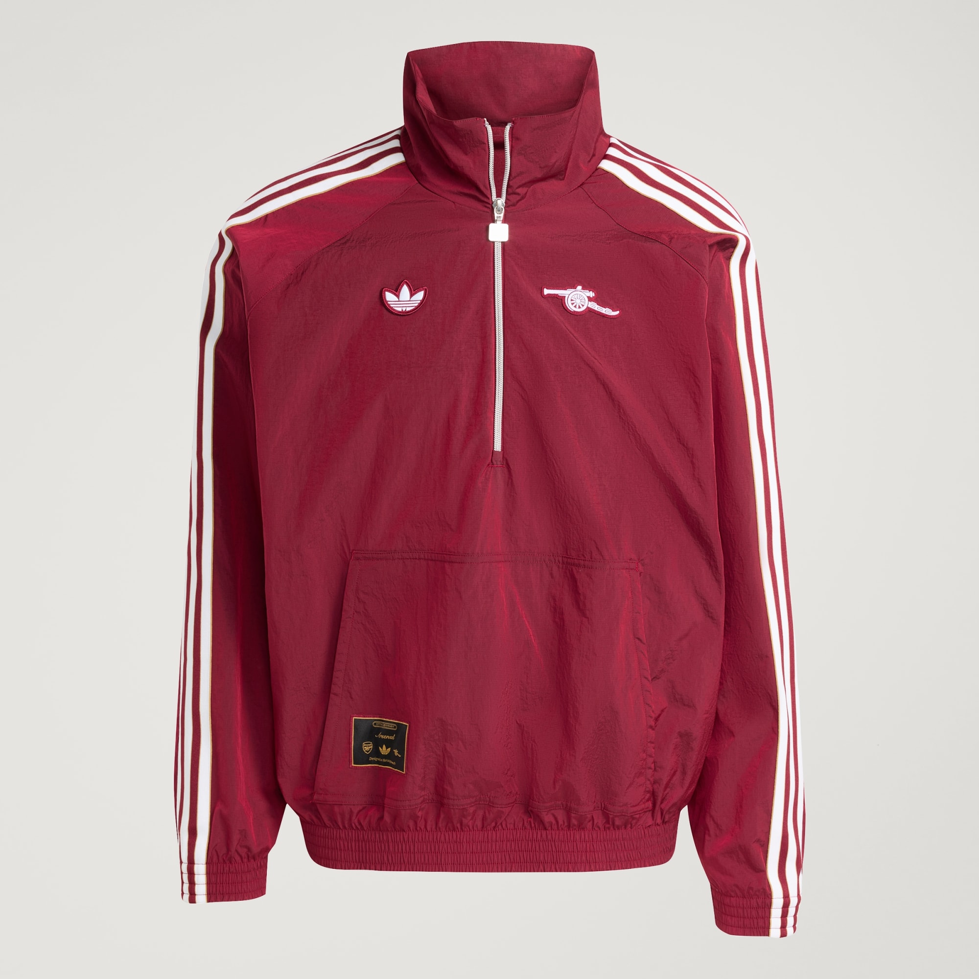 La culture Terrace du football des années 1980 fait son grand retour avec cette veste adidas Arsenal. De part et d’autre de sa fermeture demi-zip qui ne laissera personne indifférent, un trèfle et un badge en forme de canon font équipe pour t’offrir un style rétro. Ce haut est doté d’une doublure en jersey doux et confortable. En plus, grâce à son extérieur ripstop, tu seras toujours à l’aise, même lorsque tu iras te promener.