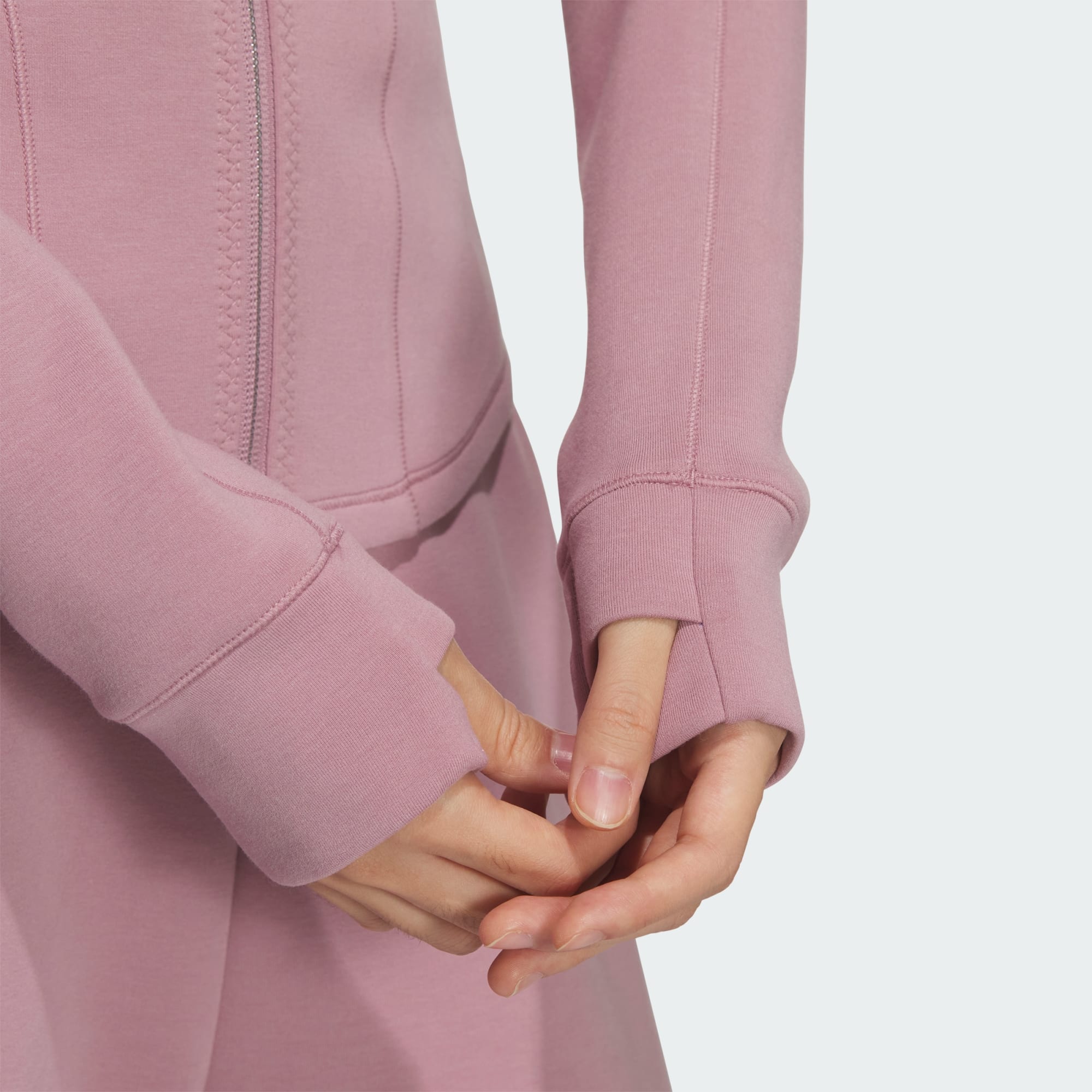 Conçue avec une coupe slim et une longueur courte, notre veste maille Slim allie style et confort. La matière spacer douce procure une sensation de luxe. L’imprimé suède apporte une touche subtile mais chic. Conçue avec une base incurvée, cette veste constitue une couche confortable et flatteuse. Les trous de pouce en font un haut polyvalent, tandis que la poche latérale zippée permet de ranger tes petites affaires en toute sécurité. Que ce soit pour une journée décontractée ou une séance d’entraînement, ce modèle crée un look contemporain. Grâce au souci du détail d’adidas, cette veste incarne notre engagement envers la qualité.