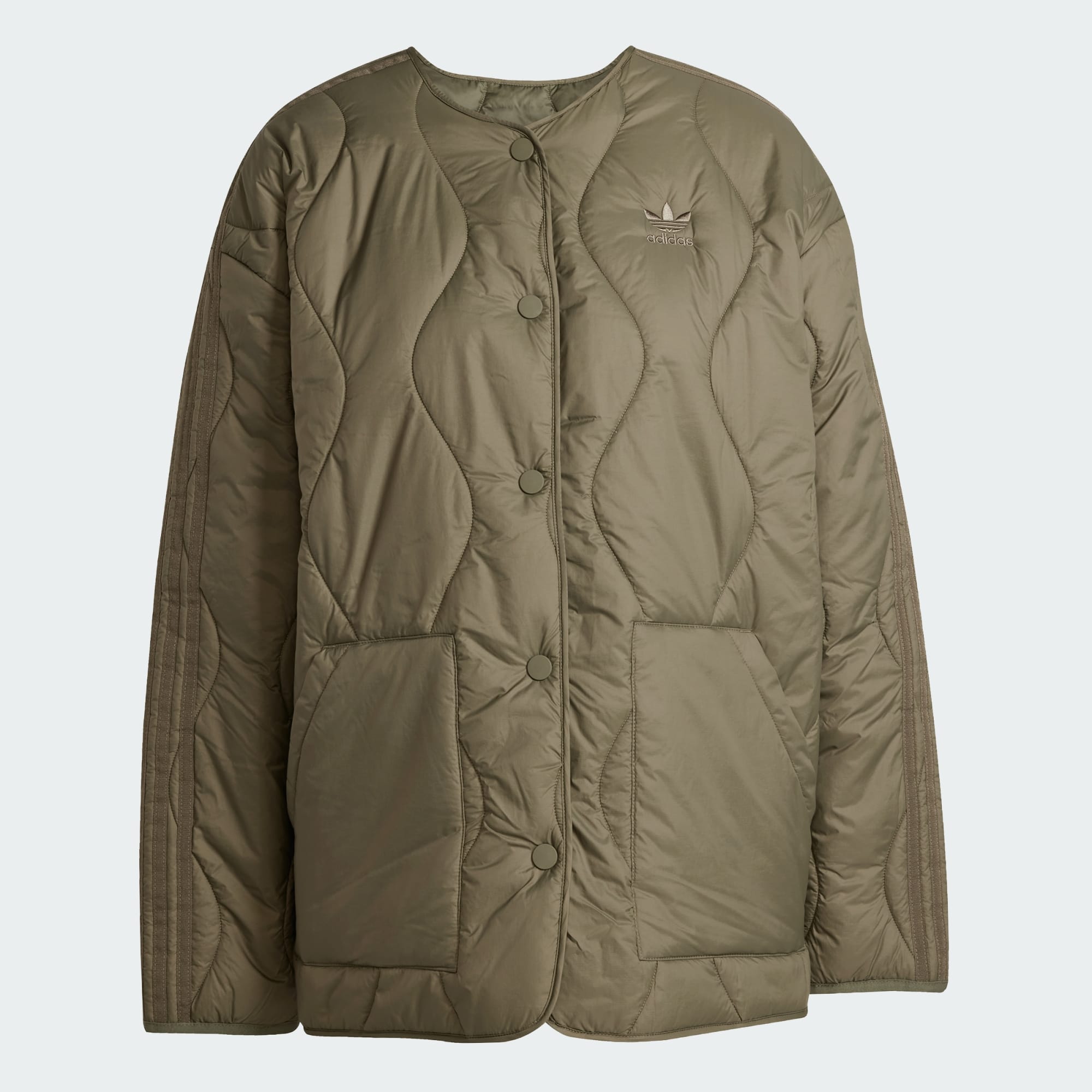 Une veste matelassée alliant look polyvalent, légèreté et confort. Les détails cousus sur le ripstop créent un effet texturé. Des détails discrets comme les 3 bandes et un petit logo Trèfle rendent hommage à l'héritage adidas. Une fermeture boutonnée à l'avant et des poches avant la rendent aussi pratique que stylée.