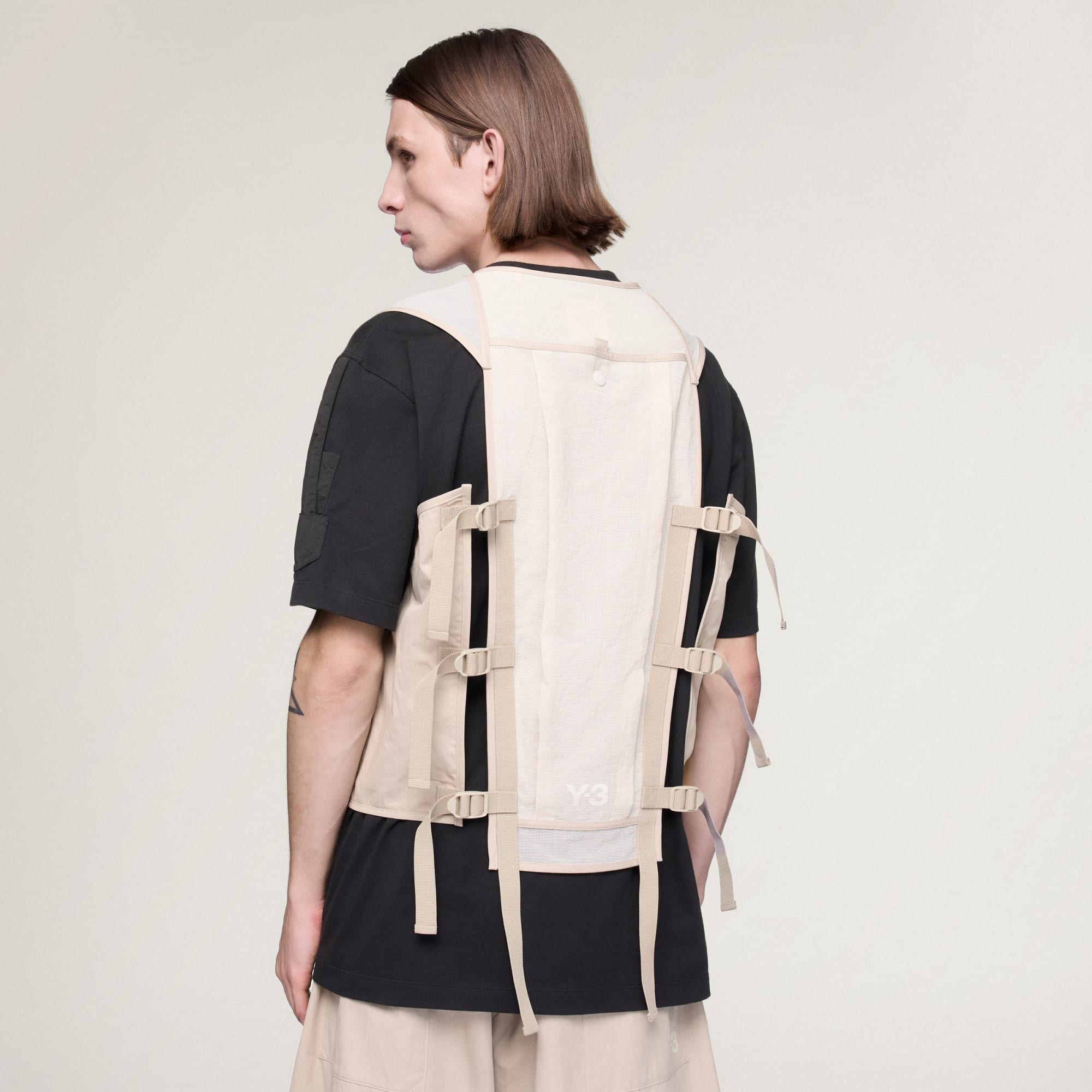 Une veste tactique sans manches Y-3 avec des détails ajustables.